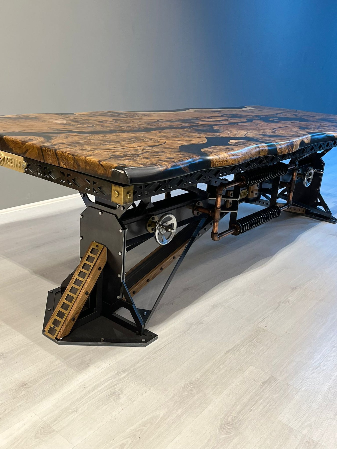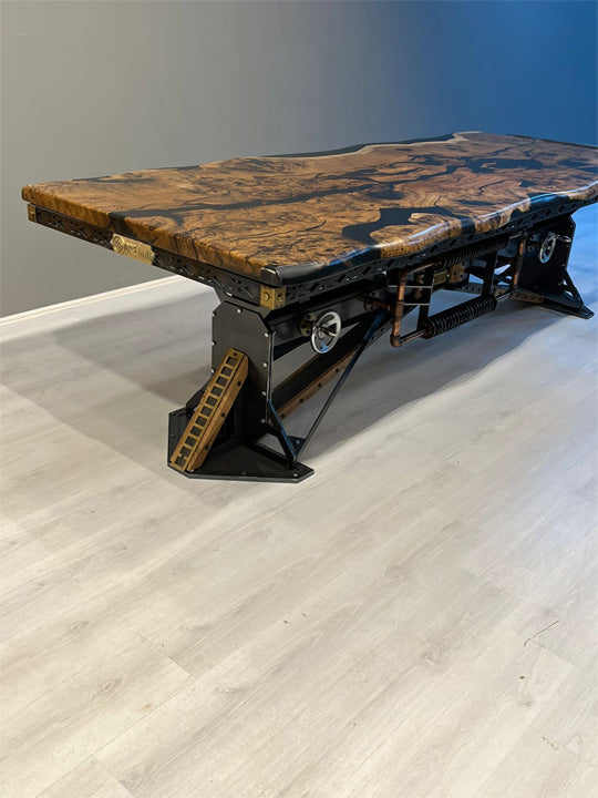 Cambridge Epoxy Table draws attention with its unique design. Epoxy table top offers a durable and aesthetic surface, while wooden details on the table leg add natural warmth. The legs, covered with transparent acrylic varnish, provide a modern and elegant look. This table, both functional and stylish, brings a sophisticated touch to your living spaces.